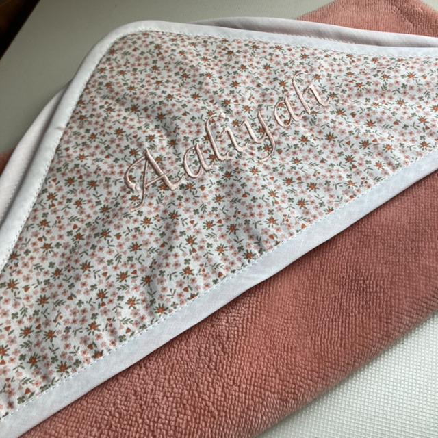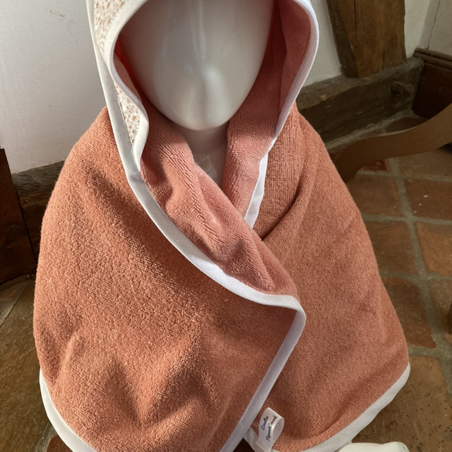 Cape de bain en éponge bambou et coton possibilité de personnaliser la cape. Différents coloris disponibles. Me contacter pour plus d’informations