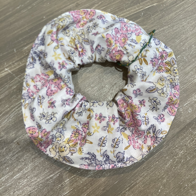 Chouchou écru fleurs rose